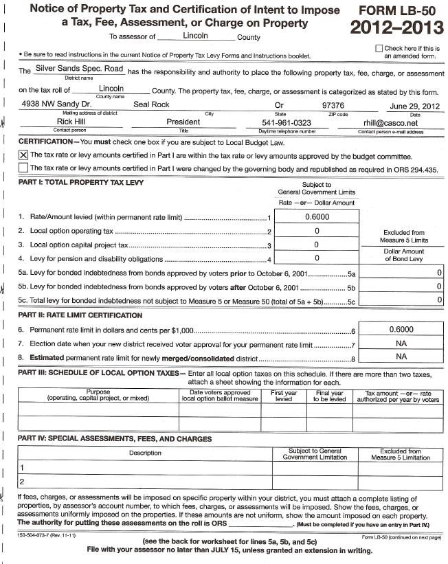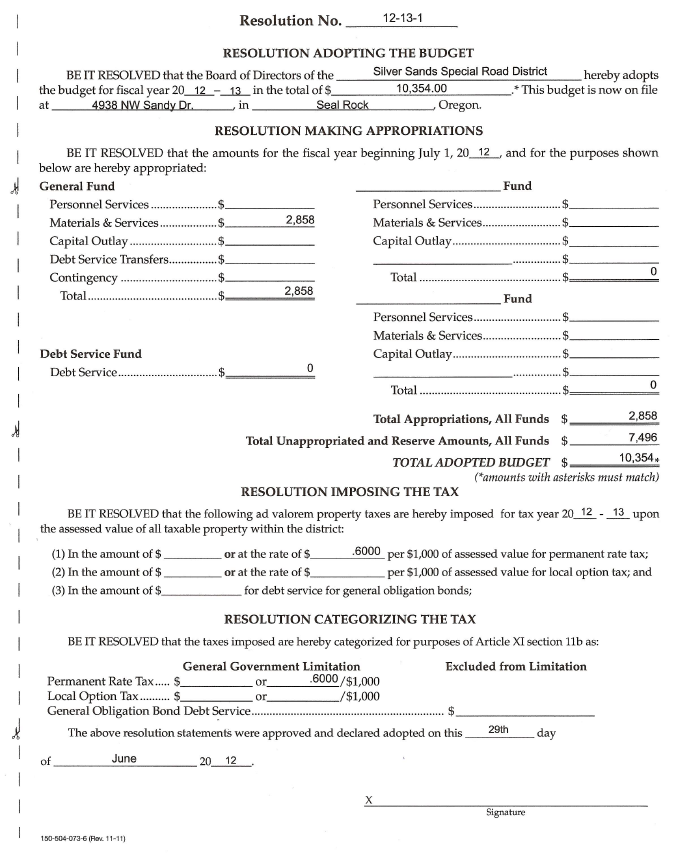 We proposed, approved and adopted the annual taxation rate of $0.60 per $1000 of assessed value.